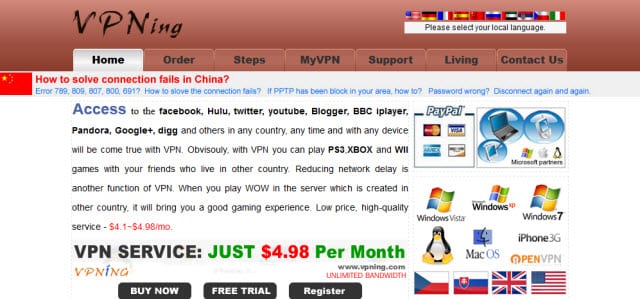 支持 PPTP、L2TP/IPSec 和 Open加速器 协议。